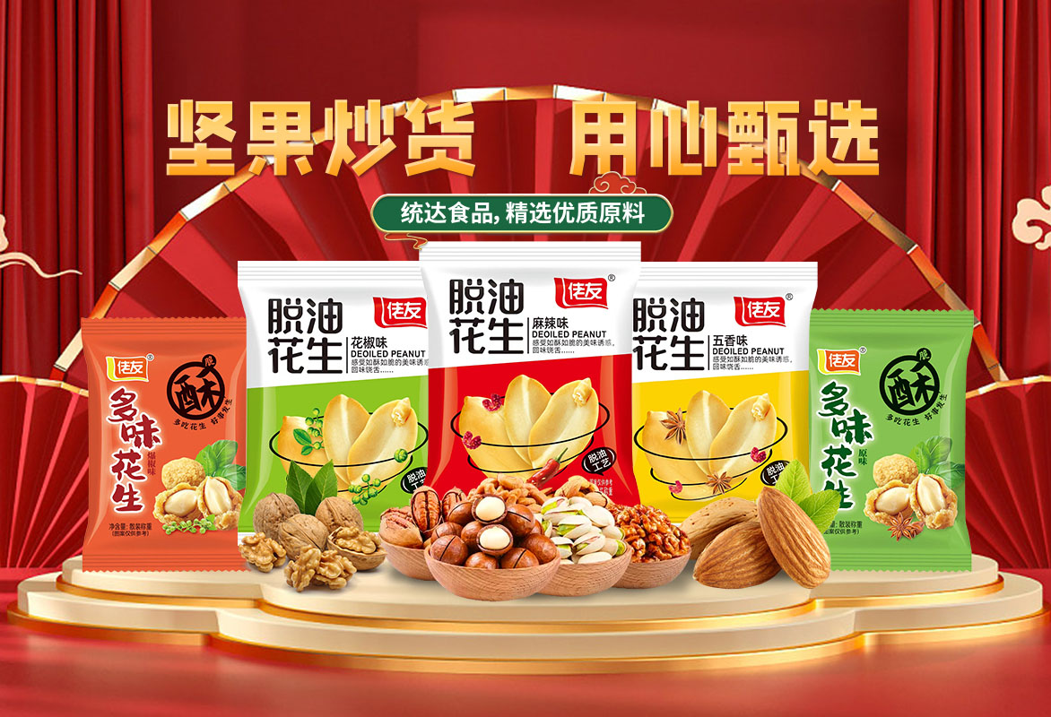 洛陽市統(tǒng)達(dá)食品有限公司創(chuàng)建于2013年,坐落于風(fēng)景秀麗的嵩山腳下,東依省會鄭州、隴海、焦枝兩大鐵路在此交匯,西連高速,洛界高速,縱橫東西南北,207國道,交通便利。當(dāng)?shù)丨h(huán)境優(yōu)美。經(jīng)濟繁榮昌盛,實為興業(yè)辦企,鴻運福順的好地方。少林寺,白馬寺,龍門石窟,玄奘故里等名勝古跡星羅棋布,近在咫尺,盡展千年華夏文明。 我廠是一家集生產(chǎn),研制,銷售為一體的食品加工企業(yè),總投資1500萬元,廠房占地面積5000平方米,員工100余人,其中技術(shù)人員20余人,年加工能力達(dá)1500余噸。公司以堅果炒貨為主導(dǎo),自主三大品牌:統(tǒng)達(dá)牌、紅仁館牌、佬友牌和授權(quán)品牌速達(dá),主要產(chǎn)品有酒鬼花生系列,麻辣花生系列,香辣酥系列,果仁裹粉類系列,怪味胡豆系列,蠶豆、青豆系列等多個品類。產(chǎn)品暢銷全國各地,深受用戶好評。產(chǎn)品選自上等原料經(jīng)多次精選而制,秉承濃郁的特色風(fēng)味,保留其原材料的營養(yǎng)和原汁原味,富含不飽和脂肪酸和人體必需的氨基酸和鋅元素,不含膽固醇,黃曲霉素,不添加防腐劑、著色劑;具有濃郁獨特的香味,是真正的“從土地到餐桌”的健康食品。產(chǎn)品特點:色澤金黃,顆粒飽滿,然后經(jīng)多種工藝加精良的天然配料精制而成,鎖生產(chǎn)出來的產(chǎn)品既保持著產(chǎn)品的獨到的口味,又不失產(chǎn)品天然的營養(yǎng)成分,滋味純正,辣椒鮮紅食之麻,辣,香,酥,甜,口感獨特,食后滿口生香,欲罷不能。久食不厭,老少皆宜,居家旅游,佐食配茶,宴賓饋友之佳品,深受廣大顧客歡迎和贊揚。 我們將以精湛的工藝,科學(xué)的管理,嚴(yán)格的質(zhì)量控制,優(yōu)異的品質(zhì)保障,以誠信,創(chuàng)新,勤奮,求實的企業(yè)精神,立于強者之林,迎接新的挑戰(zhàn)。以飽滿的熱情迎接與你的合作。 本公司“以質(zhì)量求生存,以誠信求發(fā)展”歡迎有志之士加入我們的團(tuán)隊,攜手共創(chuàng)美好明天!
